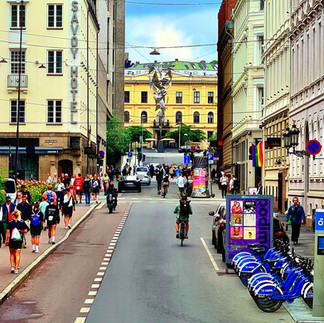 Der Wettergott ist nicht sehr gnädig mit uns, aber ab 13 Uhr soll es besser werden. Und so schlafen wir uns richtig gut aus. Conny hat noch eine Online-Konferenz und dann geht es in die Stadt. Den Weg und die Öffis kennen wir ja schon. Unser erstes Ziel: Markthallen: Delikatessenläden für Elchburger, Sushi, Fisch, Käse, Fleisch, italienisches Essen und vieles mehr.